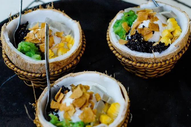 Auf dieser privaten Motorbike-Street-Food-Tour durch Saigons Viertel probierst du alles von knusprigen Pfannkuchen bis zu Kokoseis. Freu dich auf Spaß mit lokalen Guides, überraschende Stopps an versteckten Pagoden oder Blumenmärkten und spannende Geschichten zu jedem Gericht. Hier geht es nicht nur ums Essen, sondern darum, den Herzschlag der Stadt beim Fahren zu spüren.