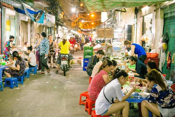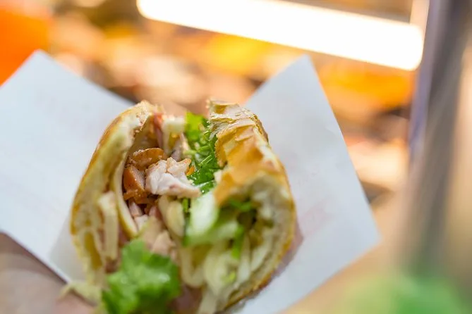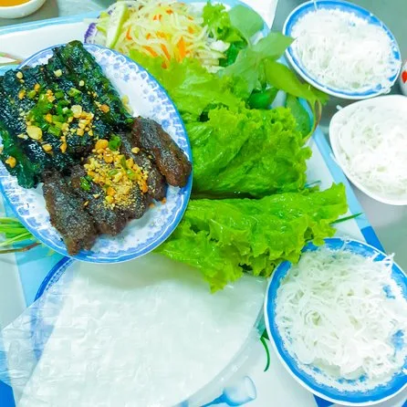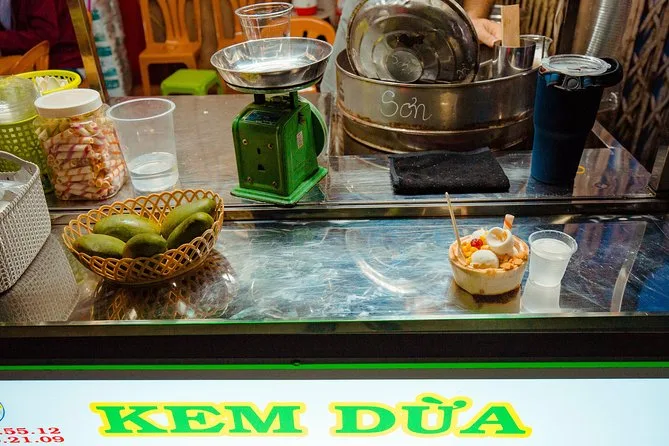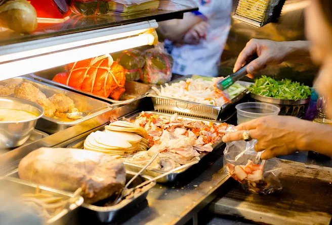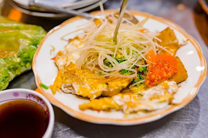 Du probierst neun verschiedene Gerichte, darunter Banh Xeo-Pfannkuchen, Bo La Lot (Rindfleisch in Betelblättern), Bot Chien (gebratene Reiskuchen), Banh Mi, gegrillte Meeresfrüchte oder Fleisch, Nudelsuppen-Spezialitäten und Nachtisch.