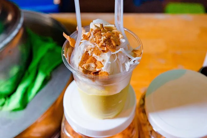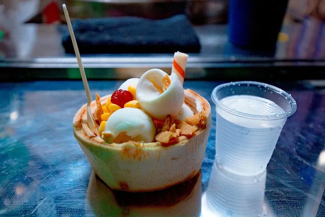 Dein Abend beinhaltet die Abholung per Taxi vom Hotel in zentralen Bezirken oder Treffpunkt Opernhaus, alle neun Streetfood-Proben sowie Getränke wie Zuckerrohrsaft und hausgemachten Reiswein. Ein englischsprachiger lokaler Guide begleitet dich durch Saigons Viertel und bringt dich nach dem Essen zurück zu deiner Unterkunft (und wahrscheinlich mit einem Lächeln). Unfallversicherung und bei Bedarf Handdesinfektionsmittel sind ebenfalls inklusive.