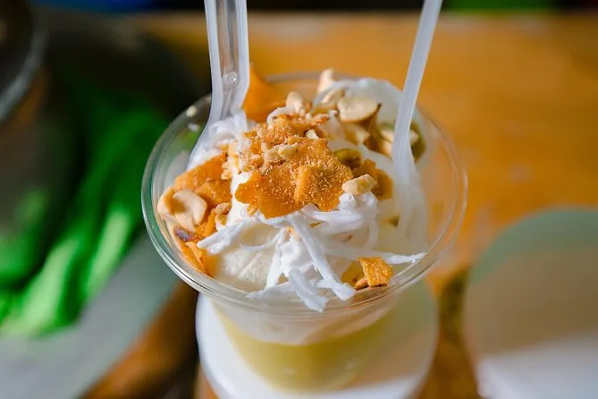 Erkunde Ho-Chi-Minh-Stadts lebhafte Straßen mit einem lokalen Guide und probiere neun Streetfood-Gerichte – von knusprigen Pfannkuchen bis frischem Banh Mi – dazu Zuckerrohrsaft und hausgemachten Reiswein. Sitze dicht an dicht mit Einheimischen an belebten Ständen und beende deinen Abend mit Dessert auf dem Nachtblumenmarkt. Ein Abend voller echter Saigon-Geschmäcker und Geschichten, die du mit nach Hause nimmst.