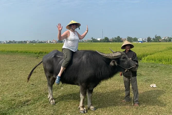 Dein Tag beginnt mit Abholung am Hotel oder Treffpunkt durch deinen Guide, Nutzung der Fahrräder für die Erkundung der Dörfer rund um Hoi An und Tra Que Gemüsedorf, die Möglichkeit, auf einem Wasserbüffel zu reiten, Paddeln im Korbboot mit Einheimischen im Nipa-Palmenwald (inklusive Tee und Kokosbonbons), Spaziergang durch die Marktstraßen der Altstadt bei Dämmerung und zum Abschluss das Loslassen deiner eigenen Papierlaterne auf dem Hoai-Fluss, bevor es zurückgeht.