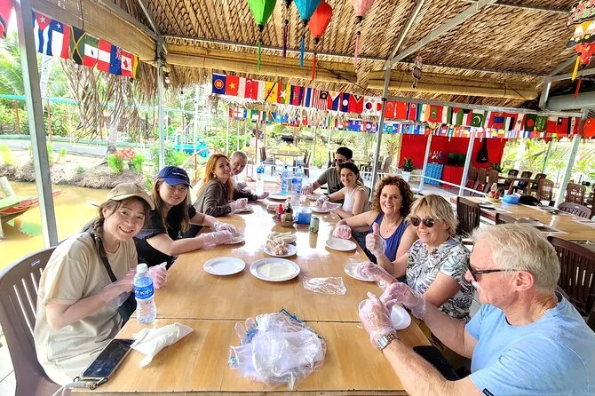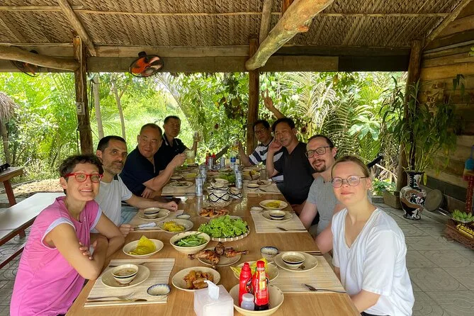 Du wachst früh auf für neblige Radtouren an Reisfeldern vorbei, lachst beim Frühlingsrollenmachen im Mekong Delta Homestay, paddelst mit lokalen Guides durch verwinkelte Kanäle und probierst Honigtee direkt von der Bienenfarm. Diese kleine Gruppe Tour lässt dich richtig ins Dorfleben eintauchen – vielleicht singst du nach dem Abendessen sogar Karaoke.