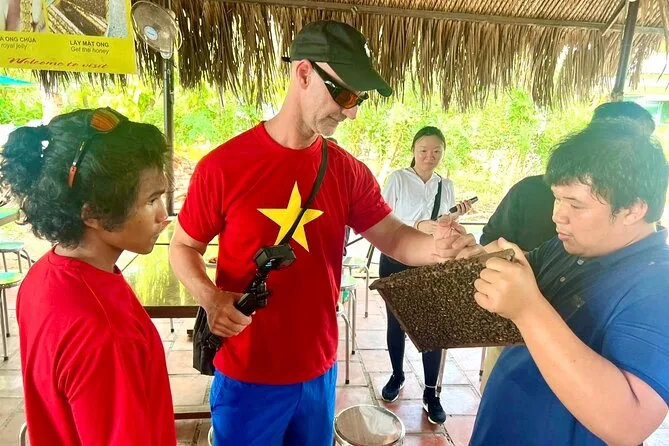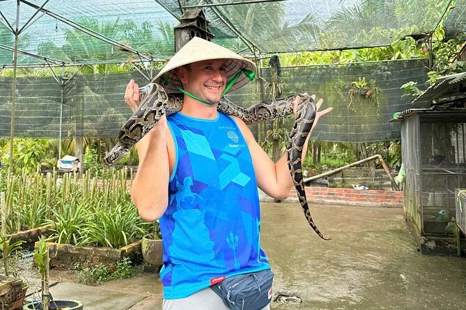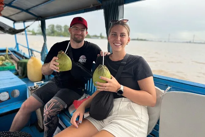 Erlebe das Mekong Delta bei einer Bootsfahrt durch schwimmende Dörfer, koste Honigtee mit Einheimischen auf der Einhorn-Insel, backe selbst Bánh Khọt in einem Kochkurs und finde Ruhe an der Vinh Trang Pagode. Inklusive Mittagessen und Abholung in Ho-Chi-Minh-Stadt – kleine, besondere Momente inklusive.