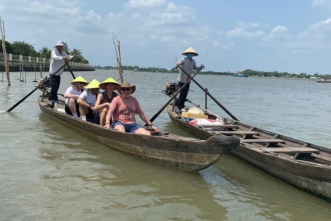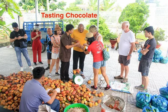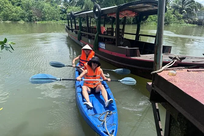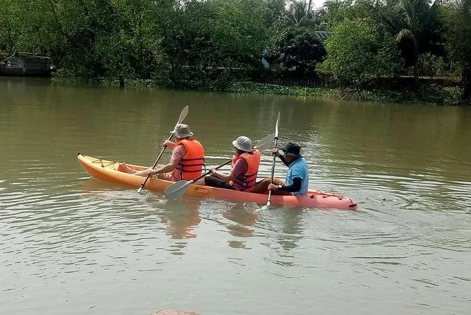 Erlebe eine Bootsfahrt durch schattige Kanäle bei Cai Be, probiere frische Schokolade in einer Familienwerkstatt, koche mit Einheimischen und genieße ein Mittagessen, bevor du per Kajak oder Fahrrad die ruhigen Dörfer erkundest – alles inklusive Hoteltransfer. Freu dich auf Lacher wegen Sprachpannen, klebrigen Mangosaft an den Fingern und überraschende Momente der Ruhe im Mekong-Delta.