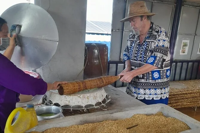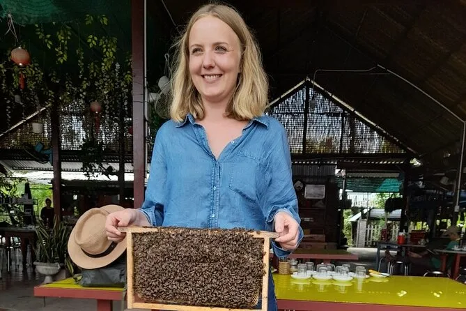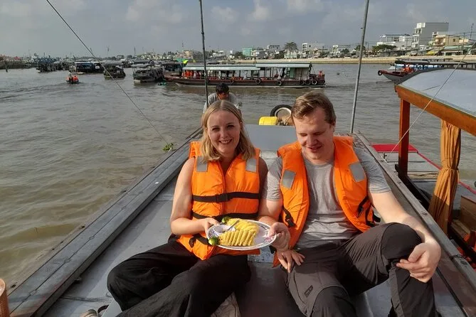 Dein Tag beinhaltet alle Eintrittsgelder, Reiseversicherung, Abholung im klimatisierten Fahrzeug, einen erfahrenen englischsprachigen Guide, vietnamesisches Frühstück und Mittagessen mit festem Menü (vegan auf Wunsch), Besuche des Cai Rang Schwimmenden Markts und eines Reiskuchen-Dorfes, Verkostungen tropischer Früchte aus vier Jahreszeiten sowie Weizenkuchen-Snacks und Mineralwasser – und natürlich viele Feuchttücher nach der klebrigen Ananaspause.