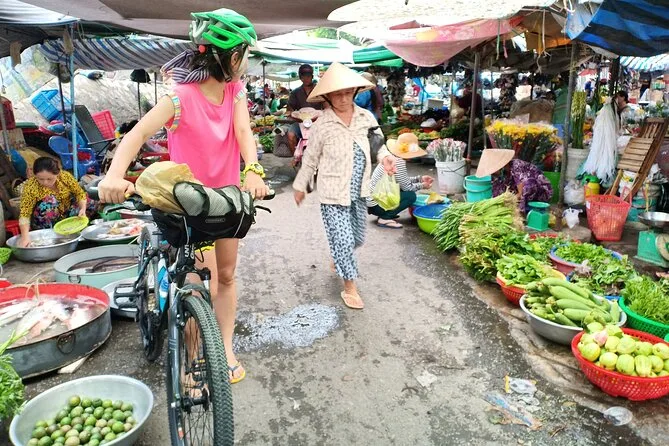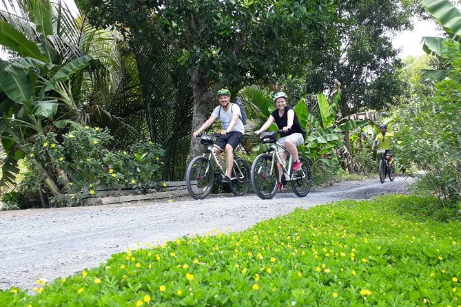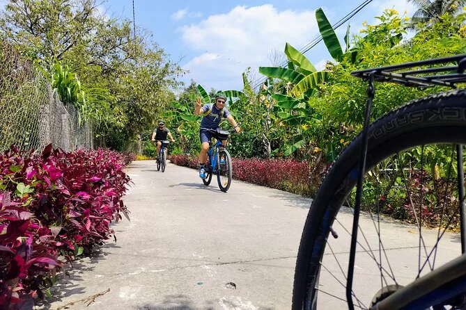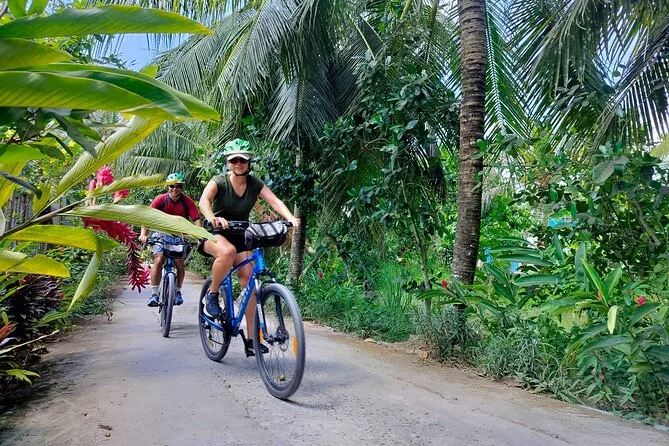 Dein Tag umfasst Abholung vom Hotel in zentralen Saigoner Bezirken oder Treffpunkt am Opernhaus, Nutzung von hochwertigen Trek- oder Giant-Fahrrädern mit Helm, geführte Radtour durch Dörfer (ca. 20–30 km), eine Bootsfahrt über den Mekong, Kajakfahren mit Bootsunterstützung und Schwimmwesten (ca. 3–5 km), Pausen für lokalen Kaffee, Mittagessen in einem familiengeführten Restaurant mit vegetarischen Optionen auf Wunsch sowie Rückfahrt und Absetzen in Saigon.