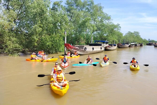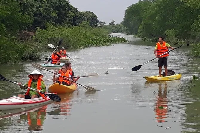 Erkunde das Mekong Delta auf ruhigen Dorfstraßen mit einem lokalen Guide, paddel dein eigenes Kajak durch grüne Kanäle fernab von Touristenmassen, genieße ein Mittagessen bei einer Familie und triff unterwegs echte Einheimische. Wer echtes Leben statt Touristenfallen sucht, ist hier genau richtig.