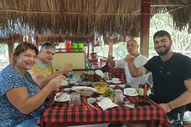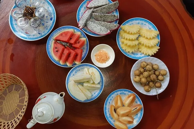 Dein Tag beinhaltet klimatisierte Transfers mit Abholung und Rückfahrt von Hotels in den zentralen Bezirken von Ho-Chi-Minh-Stadt, alle Bootsfahrten entlang der Flussufer von My Tho und Ben Tre, Eintritt zur Vinh Tràng Pagode und Workshops unterwegs, einen englischsprachigen lokalen Guide während der gesamten Tour sowie ein traditionelles Mittagessen direkt im Obstgarten vor der Rückfahrt am späten Nachmittag.