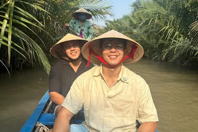 Die Fahrt mit dem Motorboot auf dem Mekong war lauter als erwartet – Kinder winkten vom Ufer und das Wasser schlug gleichmäßig gegen das Holz. Wir fuhren an Turtle Islet und Dragon Islet vorbei (Tuan scherzte, auf welcher er lieber wohnen würde), bevor wir in ein kleines Sampan umstiegen, um die engen Kanäle zu erkunden. Die Palmen streiften meine Schultern, und nach dem Motorenlärm war es fast zu still. Man hörte nur das Eintauchen der Paddel und aus einem halb versteckten Haus drang leise Musik. Dass mir diese Stille so gut gefallen würde, hätte ich nicht gedacht.