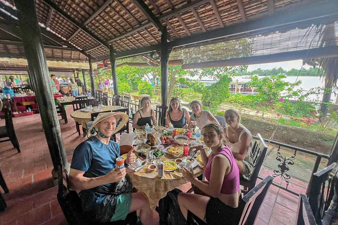 Ich gebe zu: Mein „cám ơn“ beim Dank an die Gastgeber auf der Imkerei klang ziemlich holprig – Li lachte und versuchte mich zu korrigieren, aber mein Akzent ist hoffnungslos. Der Honigtee war warm und blumig, nicht so klebrig-süß wie ich erwartet hatte. Wir probierten Jackfruit und Drachenfrucht, während lokale Musiker spielten; ihre Stimmen waren sanfter als gedacht, fast wie vom Wind getragen. Danach gab es Mittagessen (auch vegane Optionen), einfache Reisgerichte, die nach der feuchten Hitze genau richtig waren.