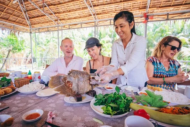 Du fährst privat mit dem Boot, besuchst Fischfarmen, probierst Obst auf einer Inselgarten-Tour, siehst die Herstellung von Kokosnussbonbons, fährst mit einer motorisierten Kutsche zur Bienenfarm, ruderst durch kleine Kanäle und isst in einem lokalen Restaurant zu Mittag.