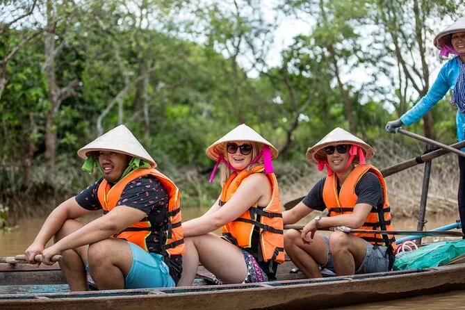 Du verlässt Ho-Chi-Minh-Stadt für einen unvergesslichen Tagesausflug ins Mekong Delta: private Bootsfahrt an Fischfarmen vorbei, frische Früchte direkt von Inselgärten probieren, Kokosnussbonbons kennenlernen und verkosten, dann entspannt lokales Mittagessen genießen – mit vielen neuen Geschichten im Gepäck.