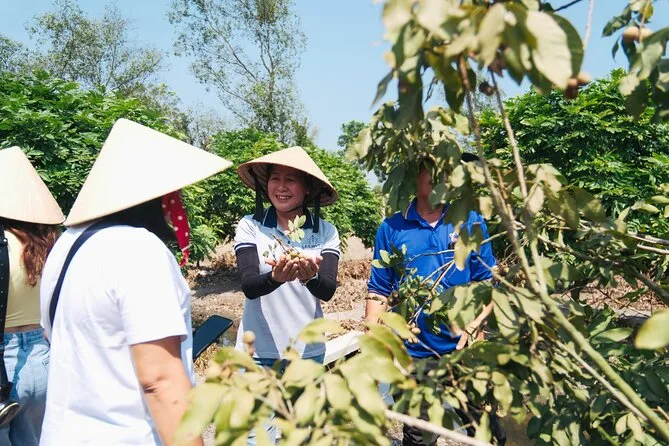 Erlebe das tägliche Leben im Mekong-Delta bei diesem Tagesausflug ab Ho-Chi-Minh-Stadt: Plaudere mit Einheimischen auf Flussmärkten, gleite durch versteckte Kanäle unter Kokospalmen, teile ein Mittagessen bei einer Familie und besuche bunte Tempel – alles mit bequemer Abholung und Geschichten, die lange nachwirken.