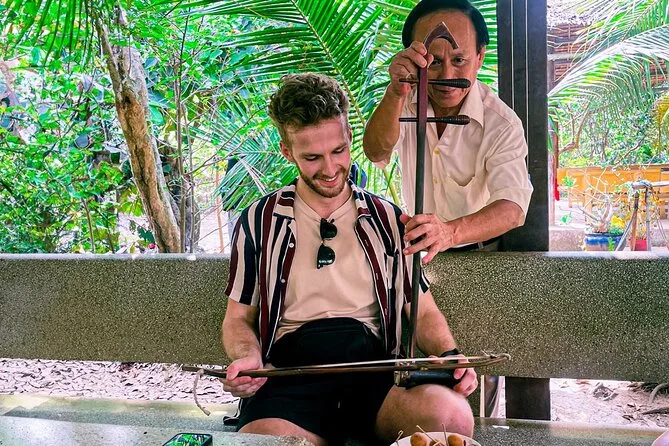 Das erste Boot war größer als gedacht. Es gibt etwas ganz Besonderes am Geruch des Mekong – schlammig, aber lebendig. Wir fuhren an winkenden Kindern am Ufer vorbei und tauchten dann in enge Kokosnuss-Kanäle ein, wo nur das Klopfen der Ruder auf Holz zu hören war. Das Rudern selbst… naja, sagen wir mal, da ist noch Luft nach oben bei meiner Technik. Unsere Bootsführerin grinste mich an, als hätte sie das schon oft gesehen. Auf der Einhorn-Insel probierten wir Honig direkt vom Löffel (Klebrige Finger garantiert) und lauschten Musik, die gleichzeitig traurig und fröhlich klang – schwer zu beschreiben.