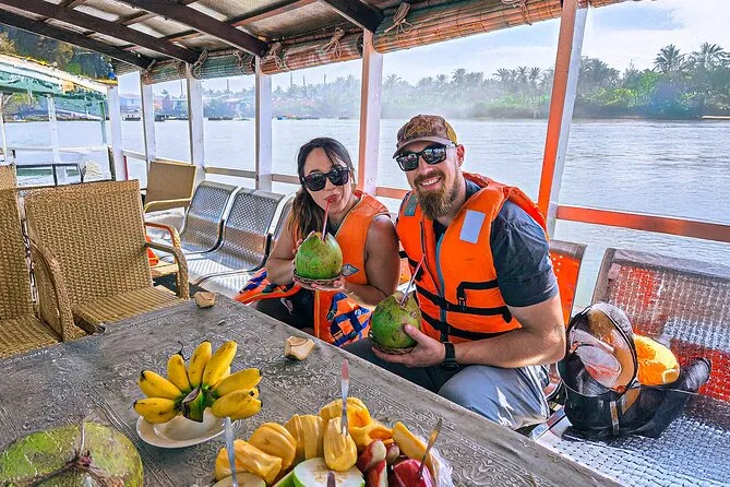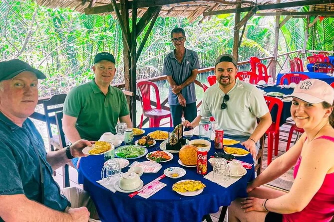 Dein Tag umfasst die Abholung vom Hotel in den zentralen Saigoner Bezirken, alle Eintrittsgelder und Steuern während der Besuche in My Tho und Ben Tre, drei verschiedene Bootsfahrten auf Fluss und ruhigen Kanälen, die Nutzung eines Fahrrads falls gewünscht, Verkostungen von frischem Obst, Honig und Kokossaft sowie ein fünfgängiges südvietnamesisches Mittagessen mit praktischem Banh Xeo Kochkurs, bevor es am späten Nachmittag zurückgeht.
