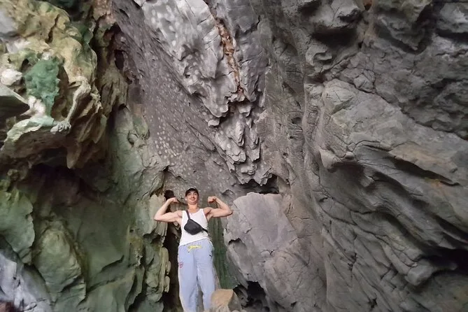 Später konnten wir optional eine prähistorische Höhle besichtigen – einige verzichteten, ich ging neugierig hinein (und vielleicht auch ein bisschen stur). Drinnen war es kühl und roch leicht nach Mineralien; an den Wänden waren Spuren von Menschen zu sehen, die hier vor Tausenden von Jahren lebten. Auf der Rückfahrt nach Ninh Binh wurde es wieder still, nur Minh summte vorne leise ein altes vietnamesisches Lied – dieser Moment blieb mir besonders im Gedächtnis.