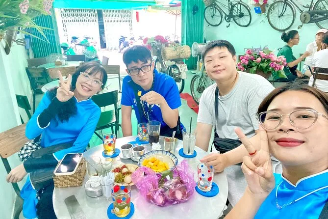 Dein Tag beinhaltet Abholung und Rückfahrt vom Hotel per Roller (oder Auto, wenn gewünscht), private englischsprachige Fahrerinnen im traditionellen Ao Dai, Unfallversicherung, Helme und Regenponchos bei Bedarf, Wasserflaschen während der Tour sowie Kaffee oder Tee an einem Stopp – dazu ein lokales Mittag- oder Abendessen je nach gebuchter Zeit, bevor es zurück zum Hotel geht.