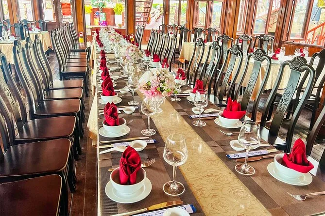 Genieße eine Dinner-Kreuzfahrt auf dem Saigon River mit Buffet oder Menü (bitte vorab wählen). Erlebe Live-Musik, private Tische und die Abholung vom Hotel in den Bezirken 1 oder 3. Sieh, wie die Stadtlichter auf dem Wasser tanzen, während dein Guide Geschichten erzählt – mehr als nur ein Abendessen, es ist Saigon hautnah.