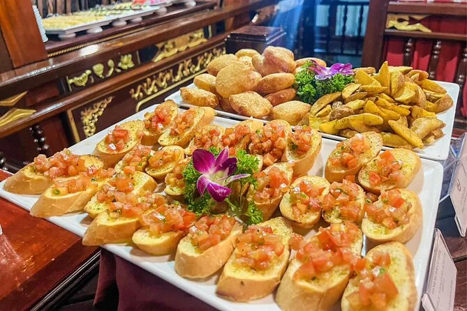 Als erstes fiel mir auf, wie die Stadtlichter über das Wasser flimmerten – nicht nur als Spiegelbild, sondern fast so, als würde Saigon uns zuzwinkern. Unser Guide Minh holte uns direkt im Hotel im Bezirk 1 ab (was den Abend echt entspannt startete), und wir schlängelten uns durch den Feierabendverkehr zum Bach Dang Pier. Sobald man an Bord geht, verstummen die Scooter-Geräusche – plötzlich ist alles ruhig, nur leise Musik und das sanfte Plätschern des Wassers sind zu hören.