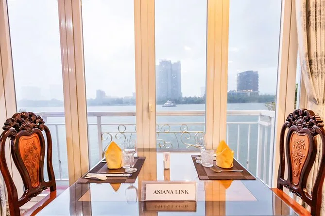 Dein Abend beinhaltet die Abholung und Rückfahrt mit Auto oder Minibus innerhalb der Bezirke 1 oder 3, dein vorab ausgewähltes Buffet- oder Menü-Dinner an einem privaten Tisch während der 60- bis 120-minütigen Kreuzfahrt auf dem Saigon River, je nach Verfügbarkeit Live-Musik, alle Steuern und Gebühren sowie die Begleitung eines vietnamesisch-englisch sprechenden Guides, bevor du zurück zu deinem Abholort im Zentrum von Ho-Chi-Minh-Stadt gebracht wirst.