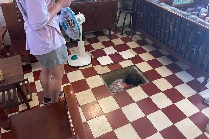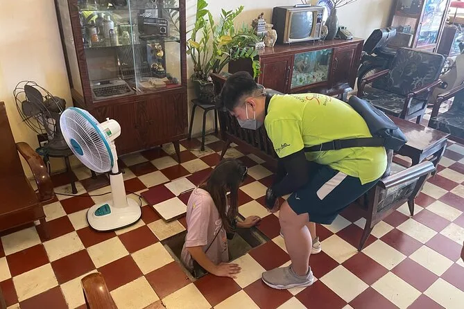 Wir machten Halt bei einem Haus, das einen alten Waffenbunker aus dem Jahr 1968 versteckt. Minh zeigte uns die Falltür – heute nur noch Holz und Staub – aber seine Augen leuchteten, als er davon sprach, eine Mischung aus Stolz und Wehmut. Ich hätte nicht gedacht, dass ich auf so einer vermeintlich lockeren Tour so nah an Geschichte dran sein würde. Später fuhren wir ins Chinatown von Bezirk 5 zum Thien Hau Tempel – der Weihrauch hing schwer in der Luft, Frauen zündeten Glücksspiralen an. Minh versuchte mir „Danke“ auf Kantonesisch beizubringen, aber ich glaube, ich habe es ziemlich verhauen.