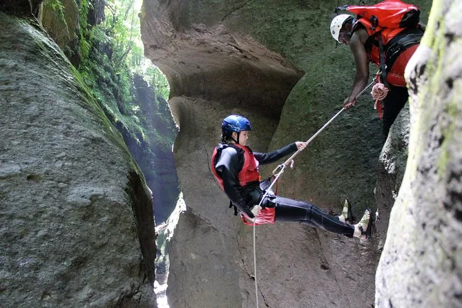 No prior training or rappel experience is required for this canyoning tour in Dominica.