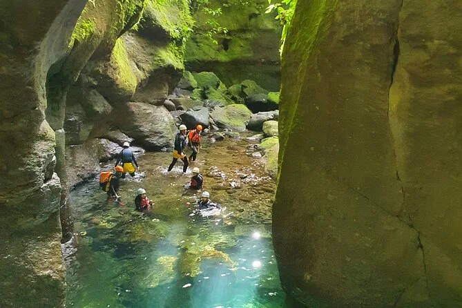 The entire canyoning experience takes about four hours from pickup to return.