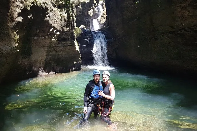 Your day includes pickup from Roseau, all necessary gear like helmets and harnesses provided at basecamp, expert guidance throughout the canyon adventure itself—including practice time—and round-trip shared transfer back at the end.