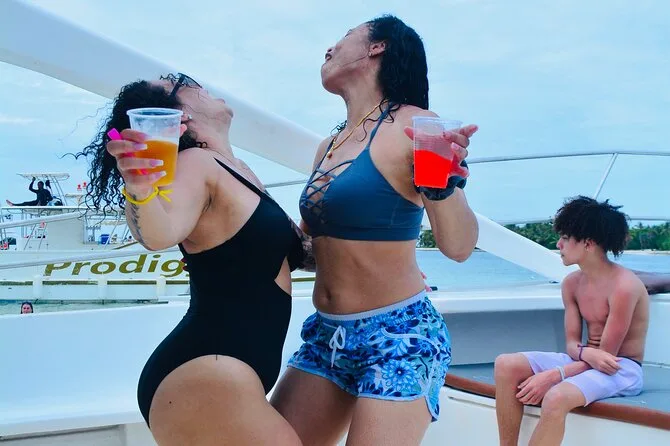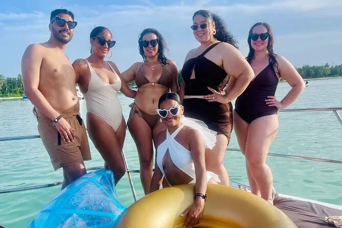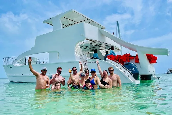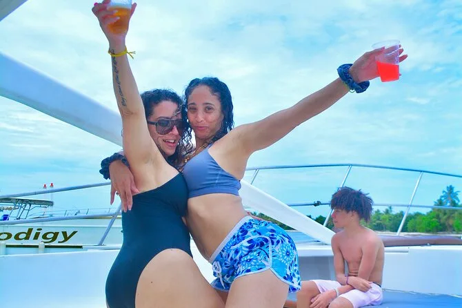 Your day includes private hotel pickup and drop-off around Punta Cana or Bávaro, unlimited drinks from an open bar (cocktails, beer, soda), snacks throughout the trip, use of snorkel gear and waterslide toys onboard—all with music of your choice—and a freshly prepared Dominican lunch before heading back to shore together.