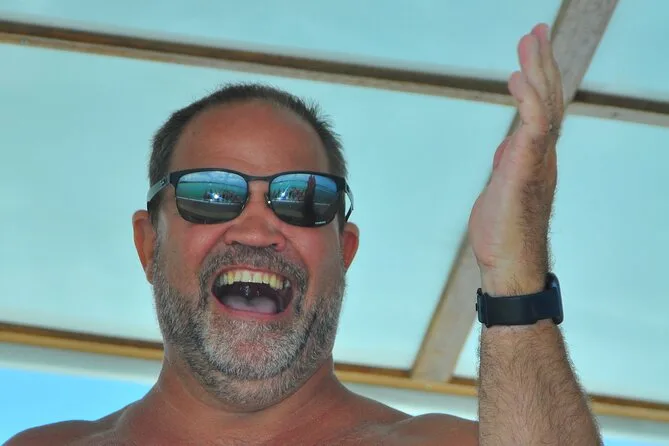 We stopped for snorkeling first—honestly, I was nervous about the mask (I always fog mine up), but one of the crew showed me a trick with spit and seawater. It worked. Underwater was quieter than I expected, just little clicks and fish shadows darting around. After that, we drifted along looking for dolphins. Someone yelled “there!” and sure enough, a few fins popped up way out past the boat. Not exactly SeaWorld-close but real dolphins, doing their own thing.