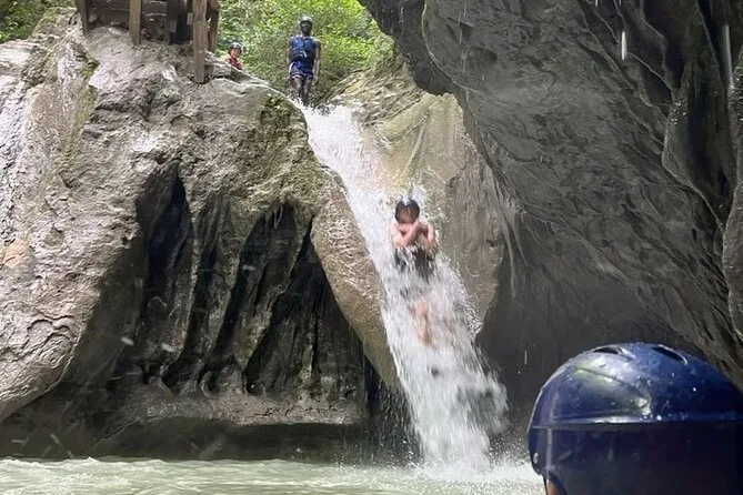 I’ll be honest: sliding down that first waterfall made my heart jump into my throat. You hear nothing but rushing water for a second, then you’re underwater, eyes stinging from the minerals (or maybe just surprise). There’s this earthy smell everywhere — mossy and fresh, not like chlorine pools back home. At one point I caught Hugo watching from above with this proud grin; he said later he always loves seeing people’s faces after that first drop. We stopped halfway for soda under some trees while trying to wring out our shirts — I still think about how sweet that tasted after all the splashing around.