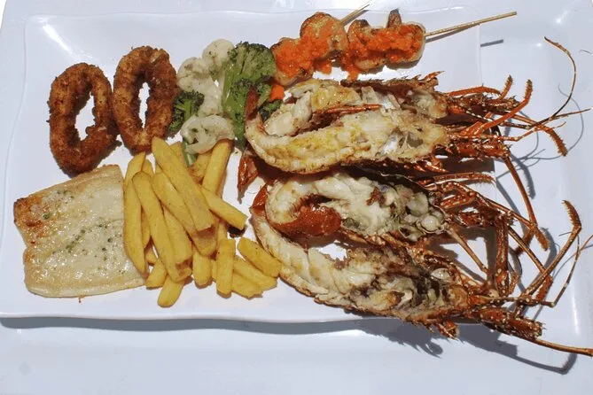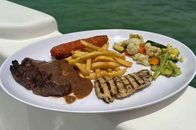 You can choose from seafood, meat, surf & turf or vegetarian meals prepared fresh on the floating kitchen.