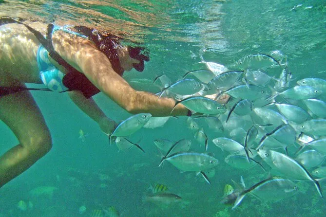 You’ll float along Punta Cana’s coast on a catamaran, snorkel among bright fish at the reef, then relax in a calm natural pool while the crew serves up drinks (including Mamajuana) and snacks. Kids join games or splash nearby as you soak up sun and music. It’s relaxed and lively at once—a day you’ll remember for its small joys more than anything flashy.