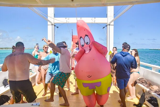 Your day includes use of snorkeling equipment for exploring Punta Cana’s reefs, unlimited drinks like rum cocktails or Mamajuana served by the friendly crew, nachos with salsa as a snack break after swimming stops, plus lively games and entertainment for both kids and adults—all set against Caribbean music as you drift between reef and natural pool.