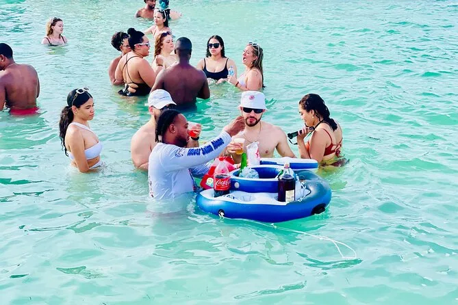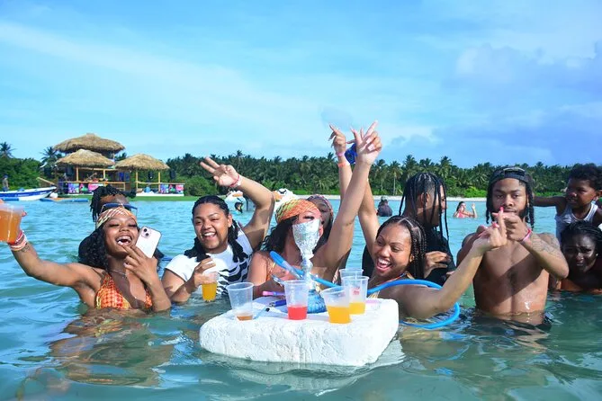 Your day includes roundtrip hotel transportation in Punta Cana, all snorkeling equipment if you want to give it a go at Anorak (even if just for five minutes), unlimited drinks from an open bar with tropical cocktails and rum punch flowing non-stop, plenty of snacks and fresh fruit trays passed around by crew who know how to keep things moving—and of course a live DJ plus an animation team leading dance-offs at both sea and sandbar stops before heading back to shore together.