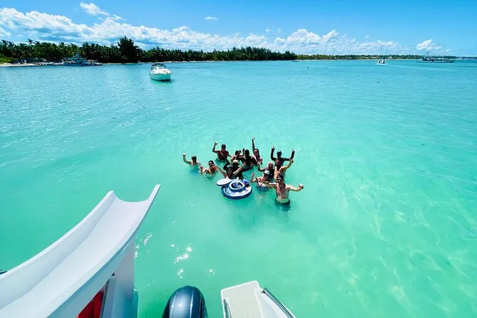 Yes, there’s a stop at a natural pool sandbar where you can swim or join dance games.