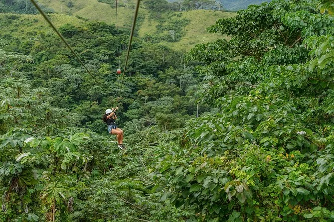 Your day includes all activity gear like helmets and safety equipment plus access to water dispensers throughout La Hacienda Park. A Dominican buffet lunch is part of the experience (drinks not included), along with first aid assistance and secure storage for your belongings before heading back down from the mountains.
