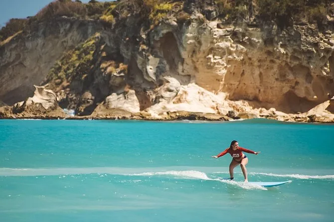 You get all necessary gear including a surfboard and SPF 50+ rashguard.