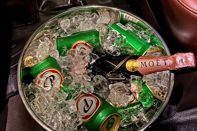 Your ride includes private transportation in an air-conditioned vehicle, bottled water to keep you cool, WiFi onboard for easy updates, plus alcoholic drinks if you want to start vacation mode early. We can also provide infant seats or make space for service animals—just let us know what you need when booking.