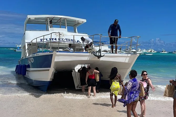You’ll board your private catamaran at Bavaro Beach with a local crew who keep things relaxed (and maybe lend you sunglasses if you forget yours). Snorkel at Bavaro Reef, snack on tropical fruit and nachos between stops, then wander barefoot along Virgin Beach while they climb palms for fresh coconuts. Finish with rum punch at the natural pool’s floating bar — music playing, sun on your face — before heading back salty and happy.