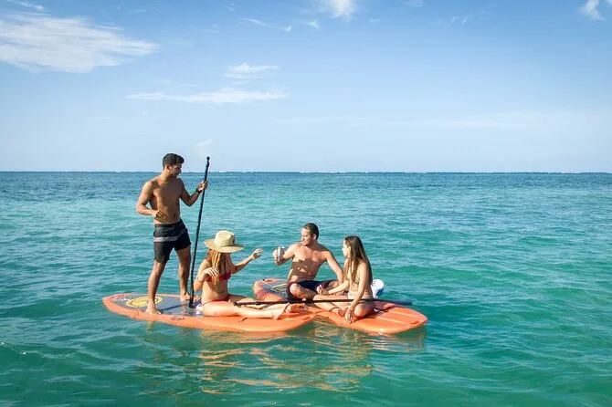 A stand-up paddle board is available to use during your stop at Piscina Natural sandbar.