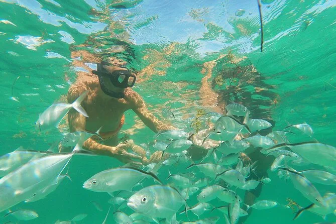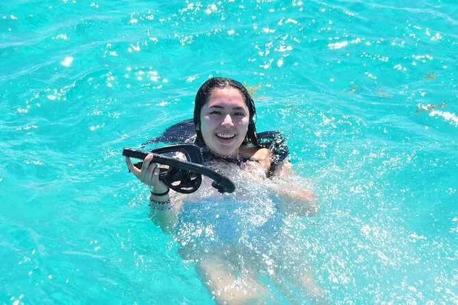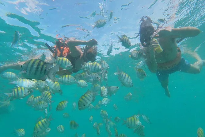 Your day includes private roundtrip transportation from your hotel in Punta Cana, use of sanitized snorkeling equipment at Cabeza de Toro Beach under guide supervision, unlimited national drinks from an open bar onboard, snacks like tropical fruits and sandwiches (with other foods available upon request), lively music tailored to your taste, and time relaxing in Punta Cana’s iconic natural pool before returning to shore.