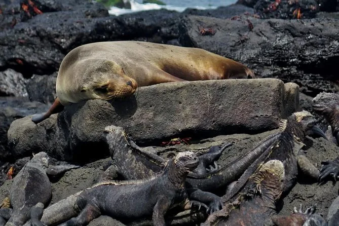 You may spot sharks, sea turtles, rays, sea lions, marine iguanas, sally lightfoot crabs, Darwin finches, pelicans, lava herons, and blue-footed boobies.