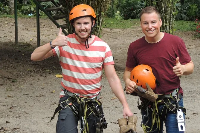The hike can last 1–2 hours depending on fitness level; paths can be muddy and uneven but are manageable for most active travelers.