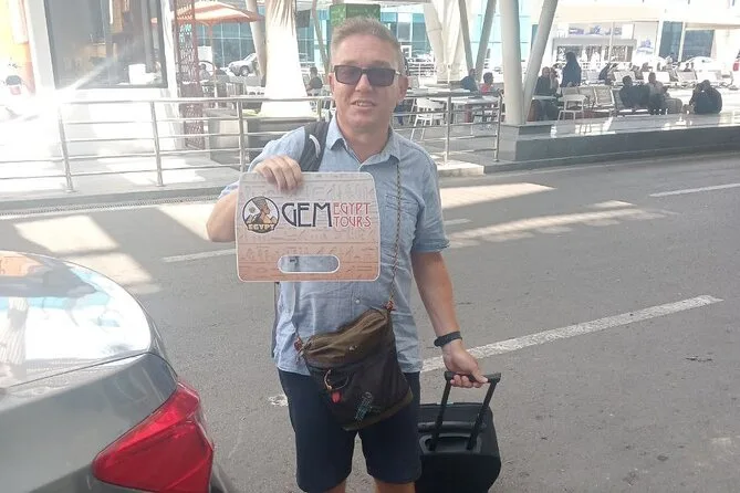 Your arrival includes private pickup from Cairo Airport by an experienced local driver who greets you inside arrivals with your name on a sign, helps carry your luggage, provides cold bottled water for the ride, ensures a comfortable trip in an air-conditioned vehicle, and drops you directly at your chosen hotel in either Cairo or Giza.
