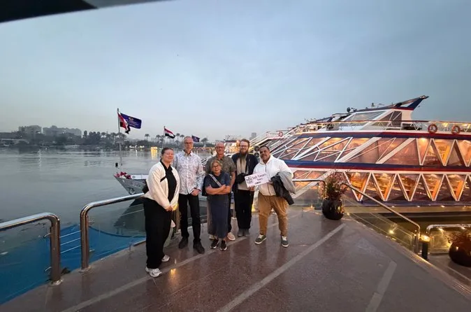 You’ll drift along Cairo’s Nile under city lights, sharing laughs over an open buffet of Egyptian dishes while belly dancers and musicians bring everyone together. With hotel pickup included and lively guides leading the way, expect real flavors and unexpected moments — plus time on deck to watch Cairo shimmer by.