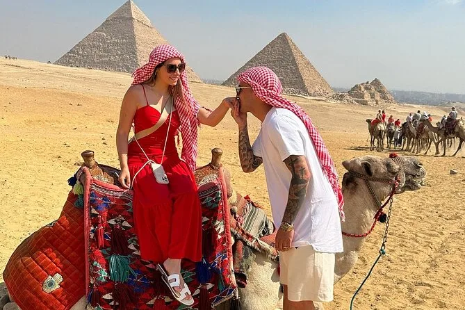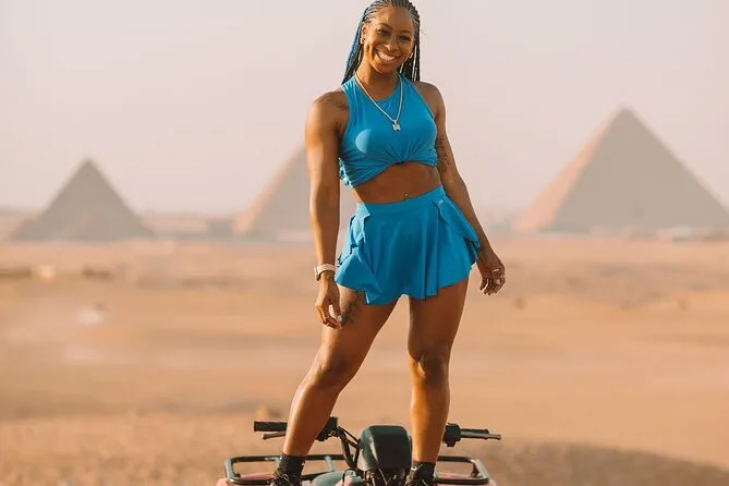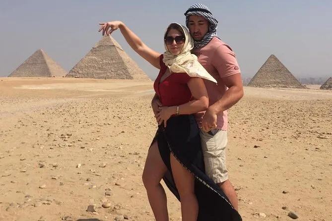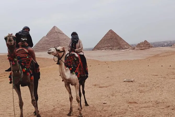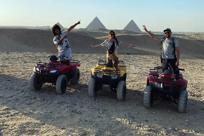 You’ll stand beneath Giza’s pyramids feeling their weight in history, step inside Khufu’s monument, ride camels through desert views, meet locals (and stubborn camels), taste smoky Egyptian lunch, then race ATVs across open sand before heading back—dusty but changed by it all.