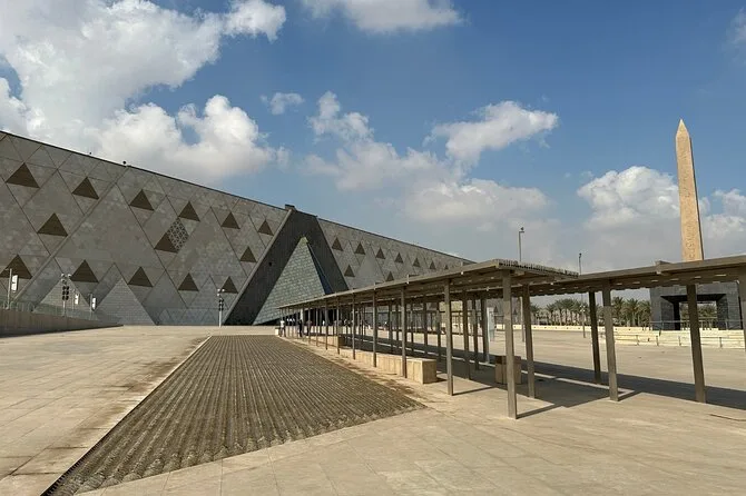 The tour typically takes most of a day, including visits to the pyramids, Sphinx, panoramic viewpoint, and two hours at the Egyptian Museum.