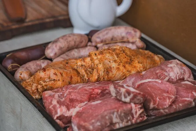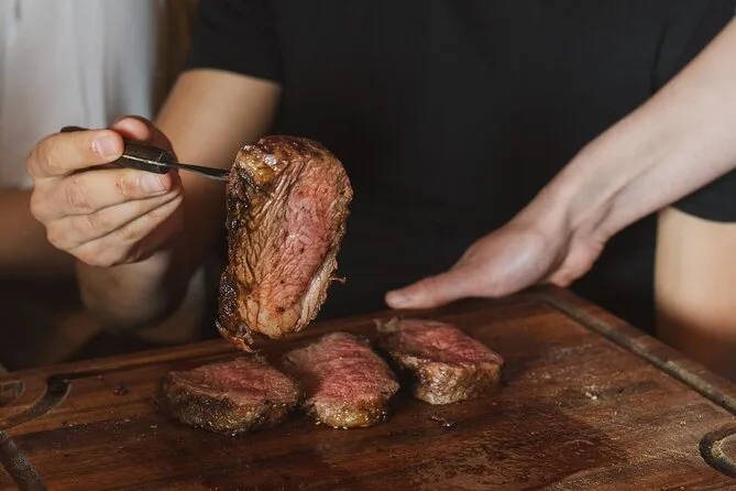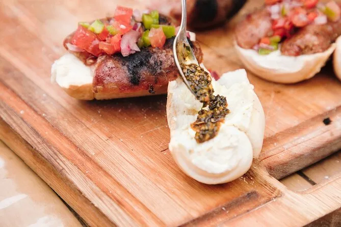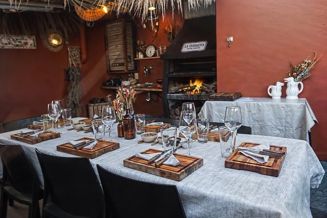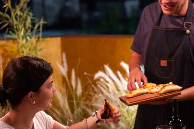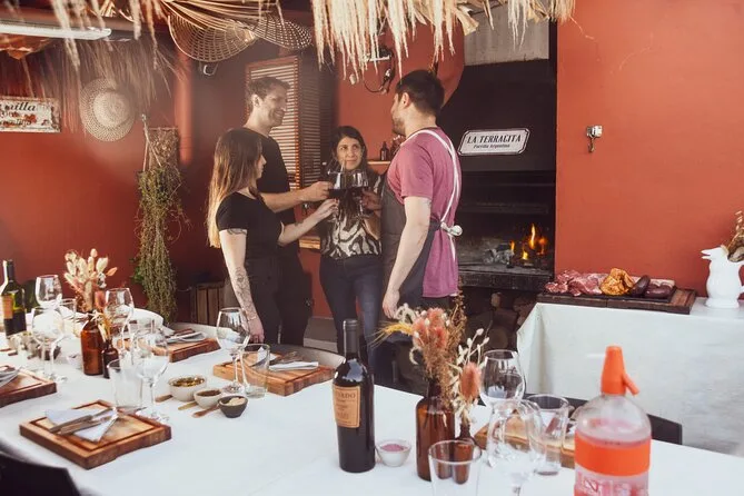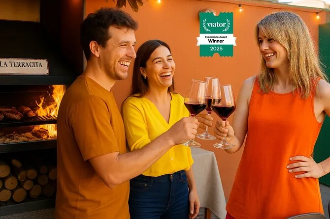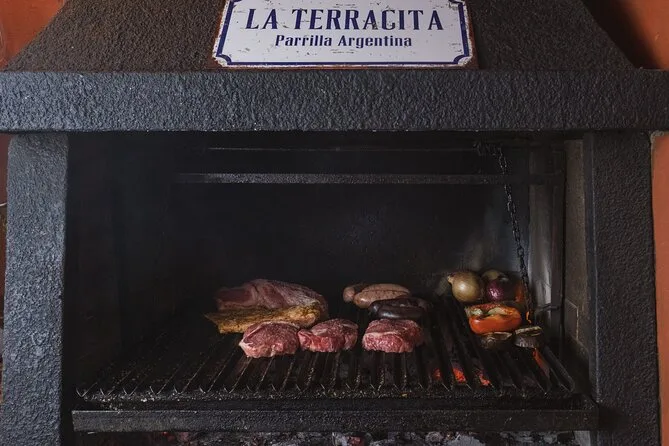 Tu noche incluye una cena de siete pasos con empanadas clásicas de Tucumán, cuatro tipos de carnes a la parrilla—entre ellas panceta marinada toda la noche—y el postre tradicional chocotorta con helado de dulce de leche. La degustación de vinos argentinos premium acompaña toda la experiencia. Contarás con la atención personalizada de anfitriones bilingües que te explicarán cada detalle de la tradición del asado. Si lo pides con 24 horas de anticipación, hay menús especiales. Si llueve, todo se traslada adentro para que nada interrumpa tu noche en Palermo Soho.
