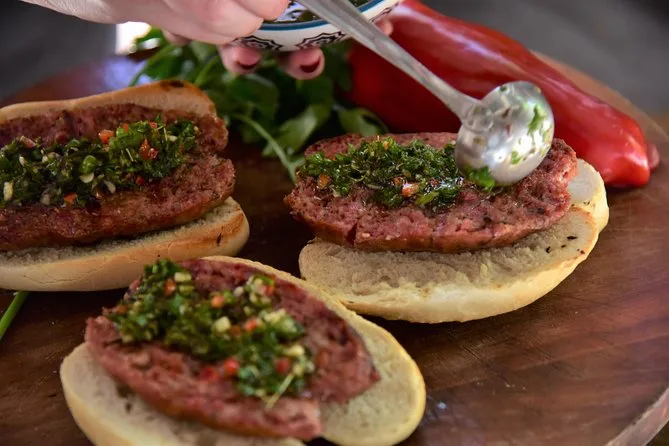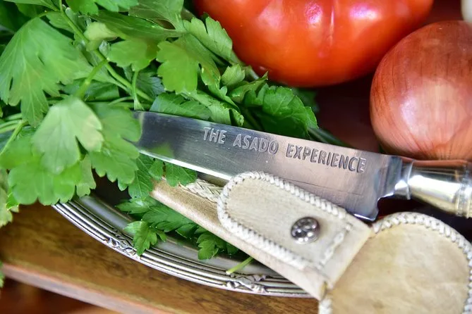 Vas a preparar y probar choripán con chimichurri, morcilla, molleja, matambrito de cerdo, bife de lomo con verduras a la parrilla y un postre argentino de dulce de leche.